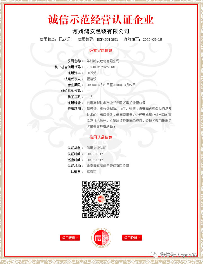 常州鴻安包裝有限公司是專業(yè)集裝袋的生產(chǎn)廠家,F(xiàn)有職工100人,專業(yè)技術人員20人,我廠擁有先進的全套生產(chǎn)設備,還具備保證產(chǎn)品質(zhì)量的全套測試方法及設備,年產(chǎn)量60萬條。我廠依托科技興廠注重技術革新在引進先進的設備同時吸收各類高級技師充實生產(chǎn)第一線,生產(chǎn)的各類規(guī)格的集裝袋以出口為主。