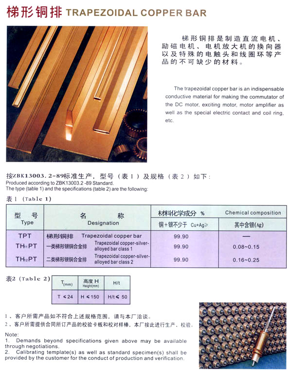 本公司是鐵道部定點(diǎn)企業(yè),擁有從電解銅配方生產(chǎn)各種銅材及銅包鋁,銅帶的專業(yè)公司,擁有先進(jìn)的進(jìn)口大型擠壓設(shè)備及技術(shù),具有開發(fā)各種銅材產(chǎn)品的生產(chǎn)能力,是國(guó)內(nèi)生產(chǎn)電工用銅、導(dǎo)電材料規(guī)模較大的企業(yè)之一。產(chǎn)品廣泛應(yīng)用于電機(jī)、電器、輸配變?cè)O(shè)備等行業(yè)。主要產(chǎn)品包括銅排系列:純銅梯排,銀銅合金梯排,銅母線,銅帶,銅扁線,銅棒,銅管及各種管坯。并可根據(jù)用戶特殊要求組織生產(chǎn),年生產(chǎn)能力25000噸。公司以質(zhì)量穩(wěn)定,交貨及時(shí)而深受用戶的一致好評(píng)。 公司的質(zhì)量方針“顧客滿意是企業(yè)永遠(yuǎn)的追求”的理念始終貫徹于生產(chǎn)經(jīng)營(yíng)全過(guò)程。1994年公司通過(guò)了7項(xiàng)基礎(chǔ)管理達(dá)標(biāo)驗(yàn)收,2003年1月通過(guò)了ISO9001:2000質(zhì)量體系認(rèn)證,并被工商行政管理局評(píng)為“重合同守信用企業(yè)”,被江蘇國(guó)際評(píng)估公司評(píng)為AAA級(jí)資信企業(yè)。
