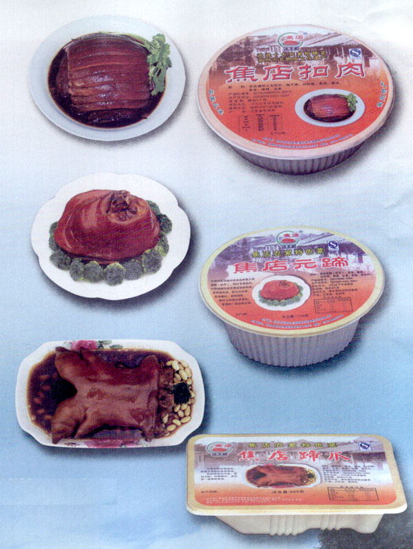 焦店扣肉: 色香昧形俱佳,現(xiàn)已成為江南地區(qū)的知名民間品牌。2006年5月被評(píng)為武進(jìn)十大農(nóng)家招牌菜,2008年9月列入武進(jìn)區(qū)級(jí)非物質(zhì)文化遺產(chǎn)保護(hù)名錄。2013年5月列入常州市級(jí)非物質(zhì)文化遺產(chǎn)保護(hù)名錄。 焦店元蹄: 主原料取自地方優(yōu)良品種豬之前蹄膀(肘子)。以傳統(tǒng)制作技藝蒸焐秘制而成。其形如元寶,稱之為元蹄。色澤醬紅,甜咸相宜,酥爛入味,是農(nóng)家喜慶、宴請(qǐng)的一道經(jīng)典大菜。 焦店蹄爪: 主原料取自豬前爪,其膠原蛋白豐富,肥而不膩,鮮香酥爛,是農(nóng)家一道養(yǎng)顏美昧佳肴。