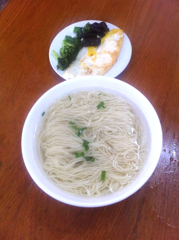 武進(jìn)人愛吃面,已經(jīng)是人盡皆知。而說起武進(jìn)人最愛吃哪種面,估計(jì)十個(gè)中有八個(gè)會(huì)說腸腸面。位于禮嘉鎮(zhèn)上的新八佰碗面館,就是以腸腸面在武進(jìn)面界擁有了眾多粉絲。 比起大部分武進(jìn)的家常面館,新八佰碗面館的門面還是挺大的,寬敞的廳堂里擺放著近10張桌子。中午11點(diǎn)不到,由于還沒到飯點(diǎn),店里的客人并不多。著裝清爽的老板娘顧紅梅正在后面的灶間里忙著炒菜!澳銊e看現(xiàn)在我們店里沒人,再過半小時(shí),人馬上就多起來了。早上9點(diǎn)前,好多人都是站著把面吃完的! 顧紅梅坦言,面館有如此好的生意,著實(shí)有點(diǎn)意外,但也在情理之中。 新八佰碗面館的前身也是一家面館,但是因?yàn)榉N種原因,最終在3年前關(guān)門大吉!捌鋵(shí)面館的市口很不錯(cuò),但我接手的時(shí)候,前任老板跟我說,一天只能做20斤面的生意。”雖然壓力很大,但顧紅梅表示,從一開始她就對(duì)面館充滿信心,“我一直覺得只要用心,沒有做不好的事! 新八佰碗面館的面是老武進(jìn)的做法,一碗面,三種做法,要么紅湯、要么白湯,還有紅湯拌面,翻花樣的是上面的澆頭。每天清晨3點(diǎn)半,顧紅梅就會(huì)準(zhǔn)時(shí)到店里,首先是煮湯底!拔覀兠骛^的湯料頭很足,用大骨頭、老母雞、開洋等足足燉夠3小時(shí)!苯又,就是做各種澆頭。由于一向擅長(zhǎng)做菜,因此有很多澆頭都是顧紅梅親自掌勺。新八佰碗面館的澆頭,除了味美,量也是足得讓食客們直呼“老板要虧本了”!熬湍梦溥M(jìn)人最喜歡吃的大肉來說,足足是別人店里的兩倍大。每次我切肉的時(shí)候,我老公總在旁邊念叨,大點(diǎn),再大點(diǎn)!鳖櫦t梅笑著說道。 早上6點(diǎn)不到,面館就會(huì)迎來第一批客人。雖然店里雇了工人,但顧紅梅只要有空,都會(huì)搶著收拾碗筷!案鶕(jù)客人們吃的量,我就知道面合不合他們的口味了。有時(shí)看到客人剩的特別多,我就會(huì)拉著問是不是不好吃。只要客人們提到的意見,我肯定一字不落地記下來,然后在以后的制作過程中一一改進(jìn)。對(duì)于很多武進(jìn)人而言, 一碗面,裝載的是小日子、小樂活,所以我必須把面做好吃嘍。”顧紅梅的如此用心,不由讓記者豎起了大拇指。 就這樣,一開始的20斤面量,一個(gè)月后就增加到了40斤,而現(xiàn)在最忙的時(shí)候,一天要用掉近100斤面。 說起招牌面,顧紅梅指了指墻上的菜單,“喏,寫在那呢,腸腸面。”面是細(xì)面,根根柔中帶勁,湯底濃油赤醬,看似很咸,其實(shí)不然,回味恰到好處。大腸處理得很干凈,腸腔里的油花幾乎都被去除了,糯糯的卻不見肥,再加一塊素雞或荷包蛋,武進(jìn)人喜歡的味道,這一碗面里就齊全了。