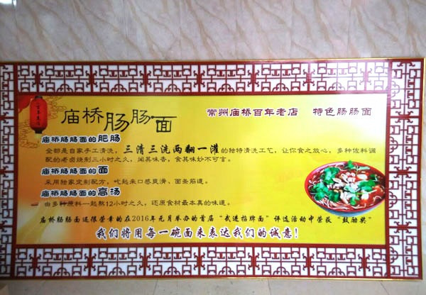 廟橋腸腸面館(原廟橋興隆面館)從事面條軋制及各色蓋澆面的經營已有40多年,穿過喧囂的廟橋集鎮(zhèn)區(qū),拐進一條略顯狹窄的道路,兩旁的小吃店突然多了起來,廟橋興隆面館就處在最中間。面館門面并不大,甚至店招牌還有些陳舊,七八張桌子整齊地排在店內。面館特色是紅燒腸腸面,現有推出真空包裝腸腸的銷售,面積有100平方米左右。 對于食客而言,一碗腸腸面就是一次美味享受。但對于店家而言,卻是許多個夜晚辛勤的付出。每天凌晨2點半起床,洗凈大腸、烹制成品,之后熬制面湯。早晨5點半,會迎來第一批客人,一直要忙活到9點才可稍微休息。中午和晚飯時間還需一陣忙碌,期間還得趕往相關收購點購買大腸。可以說,每天都是輪軸轉,休息時間不足7小時。 連續(xù)幾十年的忙碌,金祖德感到了力不從心,但他不希望手藝就此失傳。于是,他找到了尚惠平,希望能傳承這門生意。勤勞、踏實、肯干的尚惠平扛起了這份重任,經過兩個多月的學習琢磨,最終成功將腸腸面的工藝、手法全盤繼承。 “面條是手搟面,腸腸也是經多輪清洗烹制而成,一句話,要讓市民吃得放心!鄙谢萜秸f,接手8年多以來,面館生意延續(xù)紅火態(tài)勢,每天至少要吃掉100斤豬腸。 如今,尚惠平也已年過六十,“傳承”兩字又一次被提上議程。令人欣喜的是,能吃苦的兒子和兒媳十分喜歡這門手藝,一家興隆面館分店也已在學府東苑社區(qū)營業(yè)。這里有一樣的味道、一樣的面條,還有一樣的記憶、一樣的辛勞,在傳承與發(fā)展間,這家興隆面館或將真正成為百年老店。