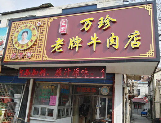 老牌牛肉創(chuàng)始人徐德洪始于1935年在常州東大街八仙浴室門口,以挑擔(dān)擺攤賣牛肉為生,1952年移至縣直街開設(shè)了徐德洪牛肉店。1958年公私合營改名為四時興牛肉店。文化大革命后又改名為立新牛肉店,1979年退休。他一生加工經(jīng)常五香牛肉,選料精良,工藝講究,配方獨到,牛肉色香味濃,味道純正鮮美,百吃不厭。長期以來,深得廣大顧客的一致好評和喜愛,成為常州城家喻戶曉的老字號。 徐萬珍乃徐德洪之女,傳承父業(yè),秉承父親精益求精的優(yōu)良傳統(tǒng),于1997年在同濟橋開設(shè)了萬珍老牌牛肉店,經(jīng)營至今二十載,嚴(yán)格選料把關(guān),遵循傳統(tǒng)加工工藝,不加工任何添加劑,繼承和保留了老牌牛肉的傳統(tǒng)特色和傳統(tǒng)老味道,色香味濃,原汁原味,得到了更多新老顧客的青睞。
