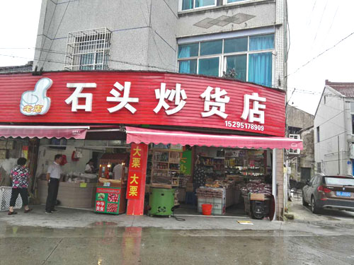湖塘花東街上的“石頭炒貨店”是20多年的老字號(hào)了。上個(gè)世紀(jì)90年代,二十郎當(dāng)歲的“石頭”一一石愛(ài)軍從徐州來(lái)到武進(jìn),就在這條街上擺了個(gè)炒貨攤!皫灼椒矫椎男〉?cái),邊上架個(gè)大鐵鍋,炒出的瓜子、花生、蠶豆,鋪在竹篾上篩過(guò)、冷卻后就可以賣(mài)了!笔瘣(ài)軍回憶,街坊鄰里冒著冬日的嚴(yán)寒,擠在地?cái)偳皣L著剛出鍋的瓜子的場(chǎng)景,還歷歷在目。20多年過(guò)去了,鄰居們都成了最熟悉的親人,從年輕姑娘到抱著孫子的老人,大家還是最?lèi)?ài)吃石頭炒的瓜子。而炒貨店的店面也擴(kuò)大了,并且在湖塘另開(kāi)了多家分店。 生意最好的還是花東街上的老店。不大的店面,被一袋袋瓜子、花生、蠶豆、核桃堆得滿滿的,空氣里也滿滿都是堅(jiān)果的香氣。超大瓜子唇齒留香,去皮瓜子鮮香入昧,南瓜子皮薄肉厚,還有開(kāi)心果、手剝松子、小油果、核桃、碧根果、小黃豆,以及炒米糕、蛋卷、麻松條、紫薯干、地瓜干、山芋片、鍋巴、芝麻糖、山楂、麻花、葡萄干….這么多美昧都是老板親手制作。愛(ài)吃點(diǎn)什么,就用一 長(zhǎng)柄勺鏟點(diǎn)兒什么,最質(zhì)樸簡(jiǎn)單的包裝袋里,裝著的是屬于這條老街居民記憶里的味道,穿過(guò)幾十年的時(shí)光,仍然鮮活生動(dòng)地銘刻在每一個(gè)人的里。 “少東家”石榮沖就是在這個(gè)老店、這條老街長(zhǎng)大的。他說(shuō)目前自己炒瓜子的技藝還沒(méi)到火候,還在跟著父親學(xué)習(xí)的階段。”挑選原料、炒制工序,每一步都有學(xué)問(wèn)在里頭!蹦玫陜(nèi)的銷(xiāo)售冠軍“內(nèi)蒙大瓜子”來(lái)說(shuō),這種來(lái)自內(nèi)蒙、經(jīng)過(guò)充足日照的葵花子每顆長(zhǎng)度近2厘米,個(gè)頭特別大,也十分飽滿。拈一顆大瓜子,就連嗑起來(lái)的聲音也分外清脆。外皮很容易與內(nèi)仁剝離,碩大的瓜子仁口感十分香脆,與別家作料用得很足、吃起來(lái)特別鮮咸的瓜子不同,這種大瓜子更注重烘托原昧,淡淡的咸昧在舌尖掠過(guò),剩余的都是屬于瓜子的天然香甜。