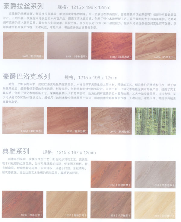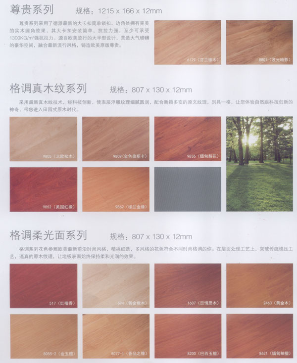 公司生產(chǎn)的地板所選用的材料均為進(jìn)口或國內(nèi)上等材料。嚴(yán)格的入廠檢驗,不使任何不合格的原材料流入生產(chǎn)環(huán)節(jié),優(yōu)異的生產(chǎn)加工工藝使原材料和精良設(shè)備的優(yōu)勢發(fā)揮至及致;嚴(yán)格的質(zhì)量管理體系更使每一流轉(zhuǎn)環(huán)節(jié)的產(chǎn)品品質(zhì)一流。每塊出廠的地板都符合比國標(biāo)更嚴(yán)格品質(zhì)標(biāo)準(zhǔn)。