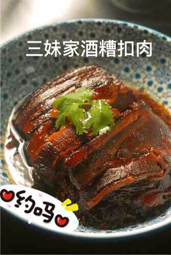 橫林有個地兒叫楊歧村,有句老話叫“上不靠橫林,下不靠洛社”,說的就是那里。 楊歧村過去幾十米就是無錫地界,今天小編推薦的土菜館「三妹農(nóng)家小吃」就在那里。 當小編一路七拐八拐,中午11點半到達那里時,門面雖然很簡陋,但店門口已然停了好多輛車。剛進入店門,就發(fā)現(xiàn)這家店人氣好旺,十幾桌基本都坐滿了。(所以說,人不可貌相,餐館也是如此) "三妹,三妹。⒌昀锟腿私袉韭暡唤^于耳,原來老板娘叫楊三妹啊。你們忙,我們先隨便看看。 過大廳到后堂就是冷菜間,里面有白切草雞、鹵豬干、拌馬蘭等十幾種土菜,尤其那草雞濃郁的香味,讓小編肚子叫得咕咕響。 往前是活貨區(qū),各種鮮魚活蝦一格一格區(qū)分養(yǎng)著,再里面是開放式廚房,每個客人都可以看到,選用的放心食材和調(diào)料。  吃貨老板娘,楊三妹,三妹,從小到大一直有個嗜好,就是愛美味,不光喜歡吃,還喜歡鉆研做。2010年,「三妹小吃」開張,因為獨具特色,在楊歧這個小村一炮而紅。要說楊三妹最拿手的菜是什么,當然是酒糟扣肉。 糟本來就是一種做米酒留下來后,用來吊燒酒的。但是我們常州人很聰明,把糟和肉放在一起,做成一道美味菜,叫酒糟扣肉。 楊三妹的酒糟扣肉之所以有名,得益于母親的悉心傳授。記憶里小辰光,她母親做的扣肉總比別人家的香!冈恪,釀完酒后留下的糟,會與炒熟的新糯米,拌和在一起,陳一年!溉狻,選擇本地養(yǎng)殖的良種豬,沒有臊味。 長大后,她把記憶里的美味延續(xù)了下來。精益求精的她,對扣肉的制作過程要求很嚴格。別人家制作都是把肉直接切大塊,排碗,熬槽,蒸爛。三妹說,這樣烹制,肉汁的鮮美會流失很多,口感減分不少。她的做法是精選新鮮豬五花,整大塊清蒸,保留肉汁的鮮美,之后再切塊紅燒,排碗,熬糟,澆蓋,再蒸。 三妹酒糟扣肉,出鍋后,色澤紅潤,味道鮮美。既有酒的香味,又有肉的鮮美,而且經(jīng)過蒸煮后,油脂都出來了,爽口不油膩。