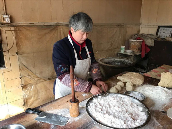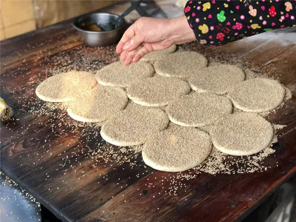 常州大麻糕已經(jīng)有150多年的歷史,常武各地的麻糕師傅、麻糕店數(shù)不勝數(shù),但今天小編要帶大家去的是一家隱藏在背街小巷里,至今仍保持著傳統(tǒng)手工制法的麻糕店。 沈正昌麻糕店位于遙觀鎮(zhèn)東街、國寧寺旁,雖然店門口連個招牌都沒有,卻不妨礙四面八方的食客慕名而來,大伙看中的正是這些純手工制作,原汁原味的大麻糕。如今的店主沈國平已經(jīng)是沈家第四代做麻糕的傳人了。 秉承著爺爺那輩傳下來的手藝,他們制作的麻糕塊大實誠,用料講究,口感酥軟,深受四周鄉(xiāng)鄰的歡迎!拔覀冞是老法,酥是生板油身擦的,餡里也是生板油摻糖,是真的綠色產品,沒有添加劑,沒有防腐劑,也不用甜蜜素,都是真家伙! 每天凌晨一兩點鐘,沈國平就要去采買當天最新鮮的豬板油,回來清理干凈,和上面粉攪拌均勻,制成面團。麻糕的制作主要由沈國平妻子和兩個姊妹來完成。揉面、搓胚子、配油酥,按餡心、搟均勻,整個過程行云流水,連貫無比。 當爐火燒得正旺,溫度能高達近300度,沈國平就上場了,赤手空拳,一撈一貼,一秒鐘的功夫,就把麻糕貼到了桶壁上。不過幾分鐘的功夫,麻糕就出爐了。經(jīng)過炭火爐子烤出來的,比一些電烤爐烤出的更香、更脆。