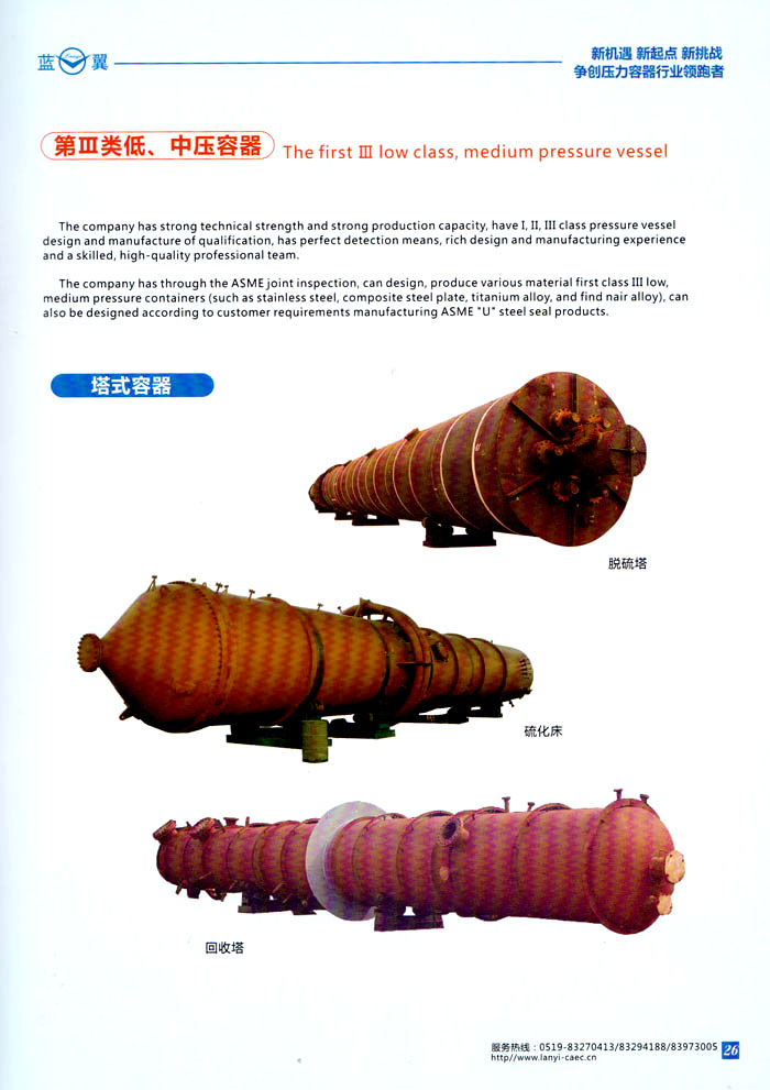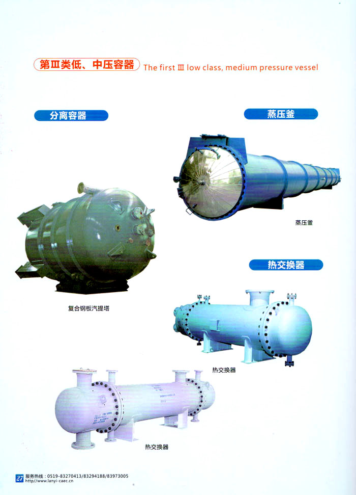 主要產品 中高壓航空滅火瓶、鋼質焊接氣瓶、第三類低,中壓力容器、蒸壓釜、換熱器、民用核承壓設備、5至160立方米各類介質貯罐、各種型號罐式集裝箱、生物工程設備、液化天然氣(LNG)車用氣瓶、液化天然氣(LNG)加氣站、乙炔工程設備、樹脂生產設備、核電工程設備、船舶專用設備等。