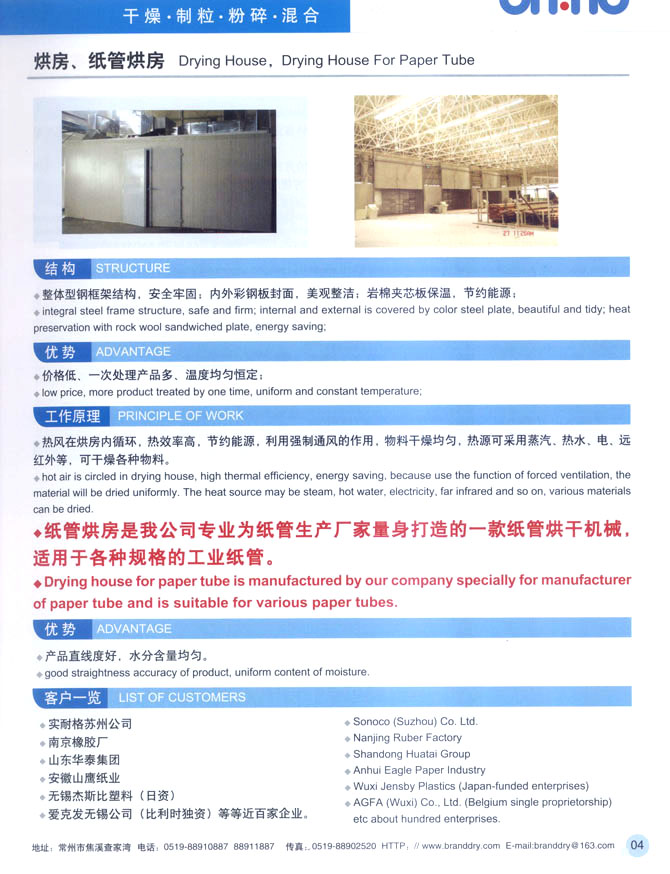 聯(lián)系人:趙琦 電話: 0519-88910887,88911887 傳真:0519-88902520 手機:13815038887 網(wǎng)址:http://www.branddry.cn/ 電子郵件:branddry@163.com 地址: 江蘇省常州市焦溪鎮(zhèn)查家灣 郵編: 213116