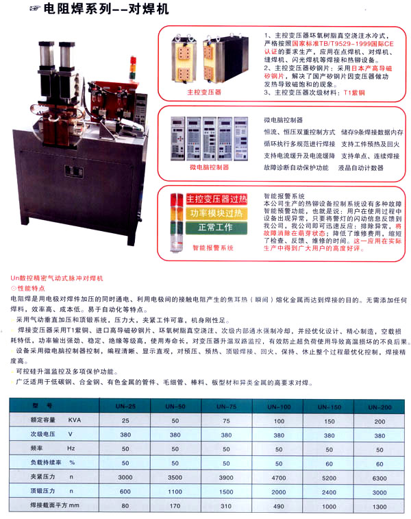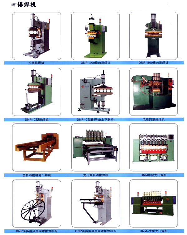 焊割主要產(chǎn)品有:點焊機系列、縫焊機系列、環(huán)縫焊接機床、凸焊機、排焊機、儲能焊機、對焊機、龍門焊機、太陽能焊接設(shè)備和機器人焊接系統(tǒng)及外圍設(shè)備等;并為用戶設(shè)計制造專用焊接設(shè)備。
