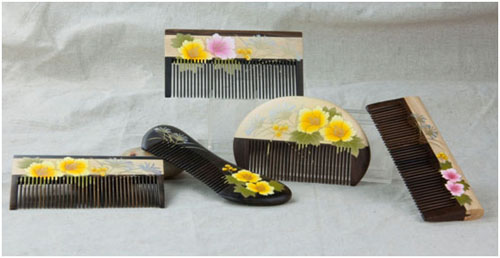 “2011首屆中國(無錫)國際文化藝術(shù)博覽會(huì)”,漆藝對(duì)梳《喜玫瑰》獲得“藝博杯“銅獎(jiǎng)。
