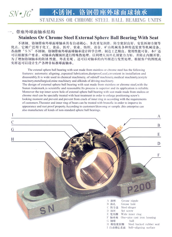 常州市武進(jìn)蘇南軸承有限公司是生產(chǎn)鋼球及帶座外球面軸承的專業(yè)工廠,主要生產(chǎn)蘇南牌“SN”不銹鋼球、鉻鋼鋼球,以及不銹鋼、鉻鋼UC、UCX、UK、HC、SB、SA、SER、UOOO、KOOO及其它非標(biāo)系列各類帶座外球面軸承、偏心套、緊定套等產(chǎn)品。本廠生產(chǎn)規(guī)格有軸承鋼球0.5-150m/m,碳鋼球0.5-150m/m,不銹鋼球0.8-50m/m,同時定做各種特殊規(guī)格的不銹鋼球、銅球、陶瓷球等。為廣大用戶提供品質(zhì)優(yōu)良,規(guī)格齊全,價格合理的各種鋼球。 本公司位于常州南部,錫宜高速公路串境而過, 交通便利。南瀕風(fēng)景秀麗的太湖,沿湖丘陵地帶人文景觀豐富,為常州市武進(jìn)區(qū)太湖旅游度假區(qū) 。本廠環(huán)境優(yōu)美,具有良好的生產(chǎn)環(huán)境,我們竭誠歡迎國內(nèi)外的朋友進(jìn)行廣泛多樣的經(jīng)濟(jì)合作交往和貿(mào)易合作,并為你提供優(yōu)良的服務(wù)。 本公司技術(shù)力量雄厚,工藝裝備先進(jìn),檢測手段完備,產(chǎn)品質(zhì)量穩(wěn)定,使用性能各項(xiàng)指標(biāo)都達(dá)到國際先進(jìn)水平,產(chǎn)品主要銷往美國、法國、德國、日本、意大利、澳大利亞、韓國、加拿大、及東南亞等國家和地區(qū)。本公司的“SN”商標(biāo)鋼球及帶座外球面軸承已贏得國內(nèi)外廣大用戶的信賴。 本公司具有外貿(mào)自營出口權(quán),并于2002年9月通過ISO9001-2000版質(zhì)量體系認(rèn)證,于2004年8月通過“CQC”產(chǎn)品質(zhì)量認(rèn)證。