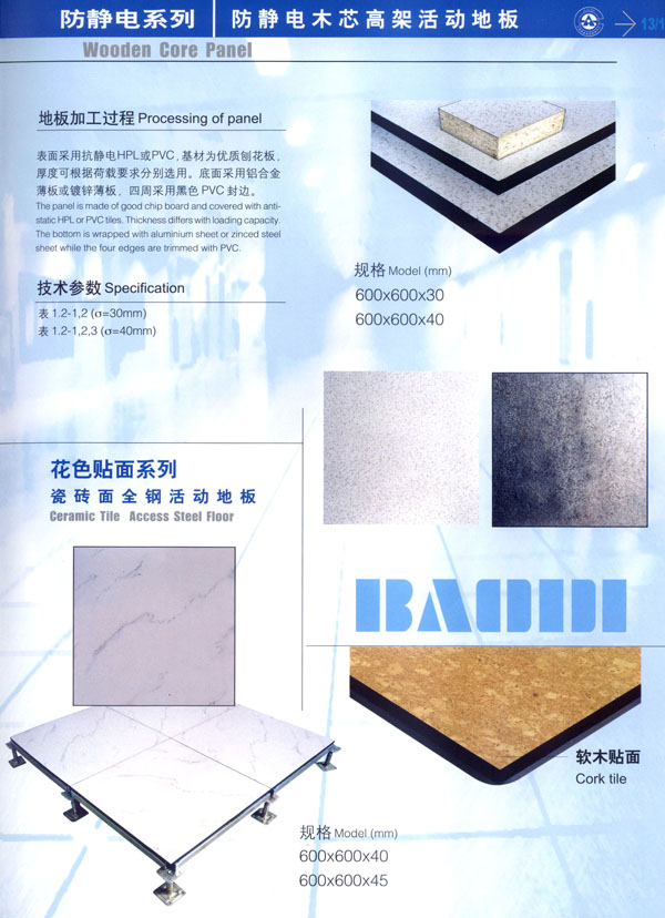 常州市寶進(jìn)防靜電設(shè)備有限公司是各類(lèi)防靜電產(chǎn)品開(kāi)發(fā)、設(shè)計(jì)、制造、安裝服務(wù)于一體的企業(yè)。以上海物理學(xué)會(huì)空間靜電專(zhuān)業(yè)委員會(huì)強(qiáng)大的技術(shù)力量為后盾。公司主要致力于各類(lèi)機(jī)房、電氣室設(shè)計(jì)、安裝;各類(lèi)防靜電干擾處理及用戶(hù)特種需求。公司擁有防空間靜電干擾—聲學(xué)復(fù)合系統(tǒng)、輕質(zhì)全鋼活動(dòng)地板、高環(huán)保型抗靜電貼面等多項(xiàng)發(fā)明專(zhuān)利,是國(guó)內(nèi)該行業(yè)中唯一擁有自主知識(shí)產(chǎn)權(quán)的企業(yè)。 公司主要產(chǎn)品“寶迪”牌 防靜電高架地板及板材、OA網(wǎng)絡(luò)地板。產(chǎn)品廣泛用于電子廠房、金融系統(tǒng)、電力、廣電、軍隊(duì)及智能化樓宇。并向多個(gè)國(guó)家出口。 針對(duì)發(fā)泡水泥填充的全鋼高架地板自身重、承載差的缺點(diǎn),我們開(kāi)發(fā)了輕質(zhì)全鋼高架地板。在提前地板承載的同時(shí),大幅減輕了地板的自重。 公司一貫嚴(yán)格執(zhí)行ISO9001-2000質(zhì)量保證體系,為用戶(hù)提供高品質(zhì)的產(chǎn)品及完善的售后服務(wù)是公司一貫的宗旨。