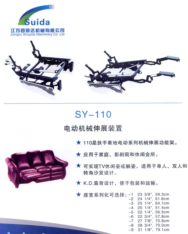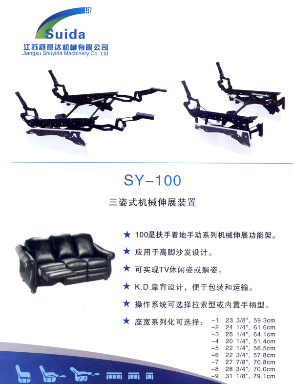 江蘇舒意達機械有限公司是一家集研發(fā)設(shè)計,生產(chǎn)制造及銷售的專業(yè)家具五金企業(yè)。公司成立于2006年,座落于風(fēng)景秀麗的江南常州,交通運輸?shù)锰飒毢,為海?nèi)外客商的來往交流,洽談和供貨提供了諸多便利,公司占地面積28000平方米,生產(chǎn)廠房面積18000平方米,獨立的辦公樓,擁有良好的工作環(huán)境。 我們的經(jīng)營思理念:堅持以人為本,科技為先,用先進的設(shè)備,好的工藝流程制造一流的產(chǎn)品。 我們的口號:保證以優(yōu)秀的品質(zhì)服務(wù)于客人,我們的目標(biāo):研發(fā)更多舒適的產(chǎn)品,帶來生活的享受。 公司誠邀海內(nèi)外客商前來指導(dǎo)洽談,攜手共進,共造雙贏。