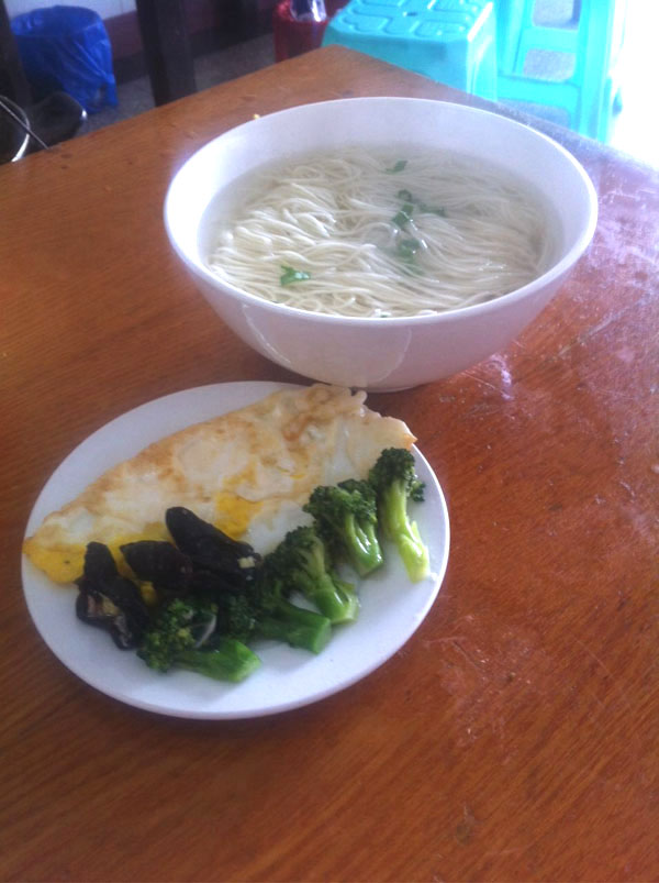 武進(jìn)人愛吃面,已經(jīng)是人盡皆知。而說起武進(jìn)人最愛吃哪種面,估計十個中有八個會說腸腸面。位于禮嘉鎮(zhèn)上的新八佰碗面館,就是以腸腸面在武進(jìn)面界擁有了眾多粉絲。 比起大部分武進(jìn)的家常面館,新八佰碗面館的門面還是挺大的,寬敞的廳堂里擺放著近10張桌子。中午11點(diǎn)不到,由于還沒到飯點(diǎn),店里的客人并不多。著裝清爽的老板娘顧紅梅正在后面的灶間里忙著炒菜!澳銊e看現(xiàn)在我們店里沒人,再過半小時,人馬上就多起來了。早上9點(diǎn)前,好多人都是站著把面吃完的! 顧紅梅坦言,面館有如此好的生意,著實有點(diǎn)意外,但也在情理之中。 新八佰碗面館的前身也是一家面館,但是因為種種原因,最終在3年前關(guān)門大吉!捌鋵嵜骛^的市口很不錯,但我接手的時候,前任老板跟我說,一天只能做20斤面的生意。”雖然壓力很大,但顧紅梅表示,從一開始她就對面館充滿信心,“我一直覺得只要用心,沒有做不好的事。” 新八佰碗面館的面是老武進(jìn)的做法,一碗面,三種做法,要么紅湯、要么白湯,還有紅湯拌面,翻花樣的是上面的澆頭。每天清晨3點(diǎn)半,顧紅梅就會準(zhǔn)時到店里,首先是煮湯底。“我們面館的湯料頭很足,用大骨頭、老母雞、開洋等足足燉夠3小時!苯又褪亲龈鞣N澆頭。由于一向擅長做菜,因此有很多澆頭都是顧紅梅親自掌勺。新八佰碗面館的澆頭,除了味美,量也是足得讓食客們直呼“老板要虧本了”。“就拿武進(jìn)人最喜歡吃的大肉來說,足足是別人店里的兩倍大。每次我切肉的時候,我老公總在旁邊念叨,大點(diǎn),再大點(diǎn)。”顧紅梅笑著說道。 早上6點(diǎn)不到,面館就會迎來第一批客人。雖然店里雇了工人,但顧紅梅只要有空,都會搶著收拾碗筷!案鶕(jù)客人們吃的量,我就知道面合不合他們的口味了。有時看到客人剩的特別多,我就會拉著問是不是不好吃。只要客人們提到的意見,我肯定一字不落地記下來,然后在以后的制作過程中一一改進(jìn)。對于很多武進(jìn)人而言, 一碗面,裝載的是小日子、小樂活,所以我必須把面做好吃嘍!鳖櫦t梅的如此用心,不由讓記者豎起了大拇指。 就這樣,一開始的20斤面量,一個月后就增加到了40斤,而現(xiàn)在最忙的時候,一天要用掉近100斤面。 說起招牌面,顧紅梅指了指墻上的菜單,“喏,寫在那呢,腸腸面。”面是細(xì)面,根根柔中帶勁,湯底濃油赤醬,看似很咸,其實不然,回味恰到好處。大腸處理得很干凈,腸腔里的油花幾乎都被去除了,糯糯的卻不見肥,再加一塊素雞或荷包蛋,武進(jìn)人喜歡的味道,這一碗面里就齊全了。