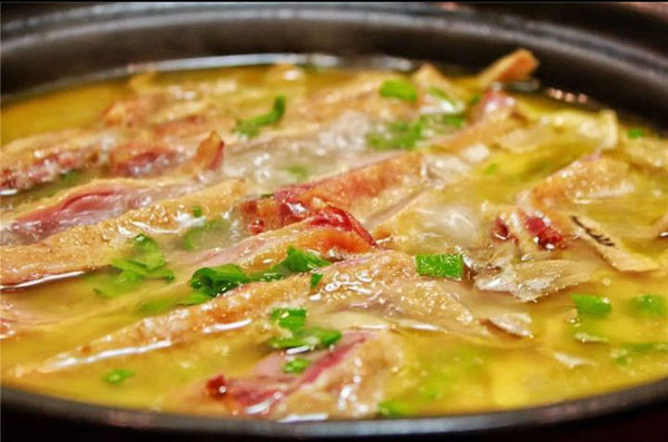 橫林有個地兒叫楊歧村,有句老話叫“上不靠橫林,下不靠洛社”,說的就是那里。 楊歧村過去幾十米就是無錫地界,今天小編推薦的土菜館「三妹農(nóng)家小吃」就在那里。 當小編一路七拐八拐,中午11點半到達那里時,門面雖然很簡陋,但店門口已然停了好多輛車。剛進入店門,就發(fā)現(xiàn)這家店人氣好旺,十幾桌基本都坐滿了。(所以說,人不可貌相,餐館也是如此) "三妹,三妹。⒌昀锟腿私袉韭暡唤^于耳,原來老板娘叫楊三妹啊。你們忙,我們先隨便看看。 過大廳到后堂就是冷菜間,里面有白切草雞、鹵豬干、拌馬蘭等十幾種土菜,尤其那草雞濃郁的香味,讓小編肚子叫得咕咕響。 往前是活貨區(qū),各種鮮魚活蝦一格一格區(qū)分養(yǎng)著,再里面是開放式廚房,每個客人都可以看到,選用的放心食材和調(diào)料。  吃貨老板娘,楊三妹,三妹,從小到大一直有個嗜好,就是愛美味,不光喜歡吃,還喜歡鉆研做。2010年,「三妹小吃」開張,因為獨具特色,在楊歧這個小村一炮而紅。要說楊三妹最拿手的菜是什么,當然是酒糟扣肉。 糟本來就是一種做米酒留下來后,用來吊燒酒的。但是我們常州人很聰明,把糟和肉放在一起,做成一道美味菜,叫酒糟扣肉。 楊三妹的酒糟扣肉之所以有名,得益于母親的悉心傳授。記憶里小辰光,她母親做的扣肉總比別人家的香!冈恪梗勍昃坪罅粝碌脑,會與炒熟的新糯米,拌和在一起,陳一年!溉狻,選擇本地養(yǎng)殖的良種豬,沒有臊味。 長大后,她把記憶里的美味延續(xù)了下來。精益求精的她,對扣肉的制作過程要求很嚴格。別人家制作都是把肉直接切大塊,排碗,熬槽,蒸爛。三妹說,這樣烹制,肉汁的鮮美會流失很多,口感減分不少。她的做法是精選新鮮豬五花,整大塊清蒸,保留肉汁的鮮美,之后再切塊紅燒,排碗,熬糟,澆蓋,再蒸。 三妹酒糟扣肉,出鍋后,色澤紅潤,味道鮮美。既有酒的香味,又有肉的鮮美,而且經(jīng)過蒸煮后,油脂都出來了,爽口不油膩。