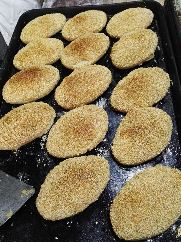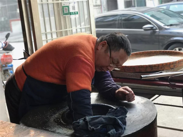 常州大麻糕已經(jīng)有150多年的歷史,常武各地的麻糕師傅、麻糕店數(shù)不勝數(shù),但今天小編要帶大家去的是一家隱藏在背街小巷里,至今仍保持著傳統(tǒng)手工制法的麻糕店。 沈正昌麻糕店位于遙觀鎮(zhèn)東街、國寧寺旁,雖然店門口連個(gè)招牌都沒有,卻不妨礙四面八方的食客慕名而來,大伙看中的正是這些純手工制作,原汁原味的大麻糕。如今的店主沈國平已經(jīng)是沈家第四代做麻糕的傳人了。 秉承著爺爺那輩傳下來的手藝,他們制作的麻糕塊大實(shí)誠,用料講究,口感酥軟,深受四周鄉(xiāng)鄰的歡迎!拔覀冞是老法,酥是生板油身擦的,餡里也是生板油摻糖,是真的綠色產(chǎn)品,沒有添加劑,沒有防腐劑,也不用甜蜜素,都是真家伙。” 每天凌晨一兩點(diǎn)鐘,沈國平就要去采買當(dāng)天最新鮮的豬板油,回來清理干凈,和上面粉攪拌均勻,制成面團(tuán)。麻糕的制作主要由沈國平妻子和兩個(gè)姊妹來完成。揉面、搓胚子、配油酥,按餡心、搟均勻,整個(gè)過程行云流水,連貫無比。 當(dāng)爐火燒得正旺,溫度能高達(dá)近300度,沈國平就上場了,赤手空拳,一撈一貼,一秒鐘的功夫,就把麻糕貼到了桶壁上。不過幾分鐘的功夫,麻糕就出爐了。經(jīng)過炭火爐子烤出來的,比一些電烤爐烤出的更香、更脆。