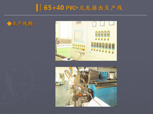 特別是經(jīng)過我公司技術(shù)人員多年研發(fā),在尼龍+PVC共擠、低煙無鹵輻照交聯(lián)料擠出方面,取得技術(shù)性突破,為客戶解決了在實(shí)際生產(chǎn)過程中存在的技術(shù)、工藝方面的問題,取得了客戶的信任與支持。
