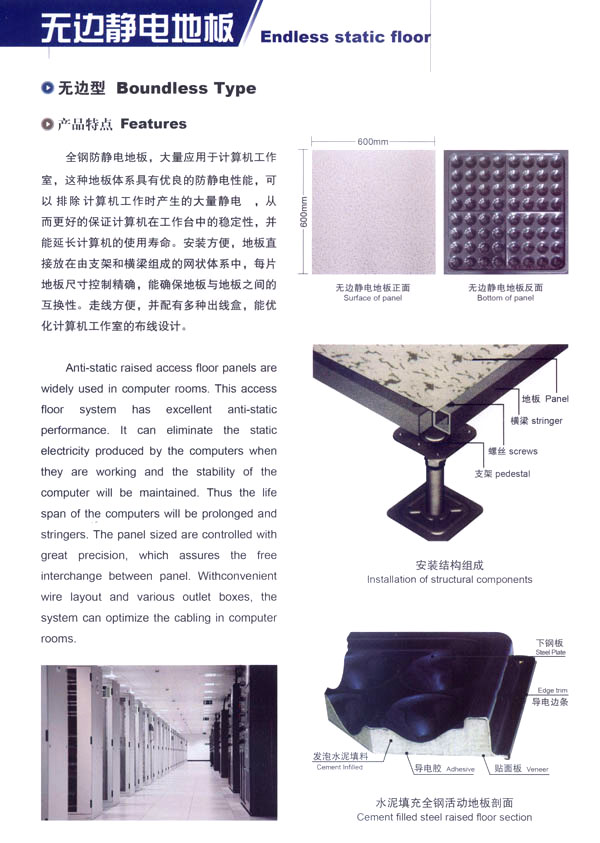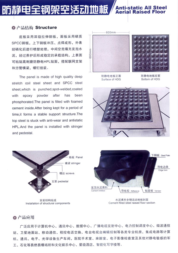 常州星峰活動(dòng)地板有限公司地處常州市橫林鎮(zhèn)前豐工業(yè)園區(qū),東鄰無(wú)錫。南有312國(guó)道。京杭大運(yùn)河、北臨滬寧高速公路,交通便捷。本公司資質(zhì)較深,是生產(chǎn)鋼質(zhì)抗靜電地板的專(zhuān)業(yè)廠(chǎng)家。十多年來(lái)積累了豐富的經(jīng)驗(yàn)及雄厚的經(jīng)濟(jì)實(shí)力。并以?xún)?yōu)質(zhì)的產(chǎn)品、優(yōu)良的售后服務(wù)贏得了用戶(hù)的一致好評(píng)。 本公司生產(chǎn)產(chǎn)品廣泛應(yīng)用于電子計(jì)算機(jī)房、通訊機(jī)房、電視發(fā)射臺(tái)、軍事指揮站、各類(lèi)實(shí)驗(yàn)室、辦公室及一些管線(xiàn)鋪設(shè)比較集中與要求防靜電場(chǎng)所,市場(chǎng)網(wǎng)絡(luò)縱橫江蘇、山東、福建、甘肅、上海、北京、安徽、浙江、河南等地。