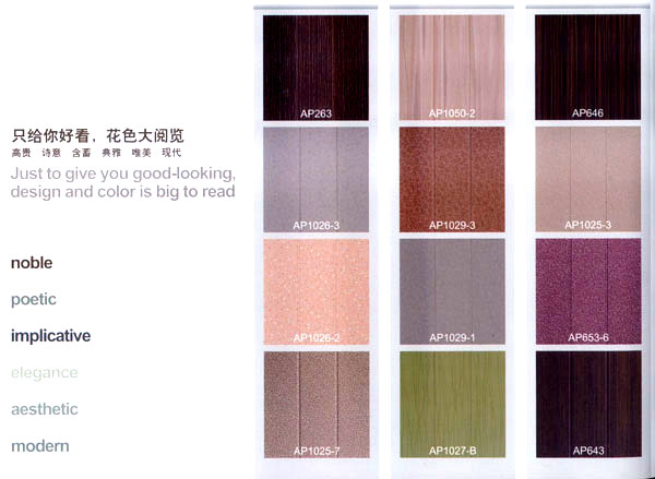 常州愛普裝飾材料有限公司位于美麗富饒的江蘇省常州市,是一家專業(yè)從事墻板設(shè)計與生產(chǎn)的企業(yè)。年生產(chǎn)墻板300萬平方米。"愛普墻板"是我公司生產(chǎn)的一種新型墻面裝飾材料,產(chǎn)品由人造金剛石耐磨層、三聚氰胺裝飾紙、EO級HDF材料、高檔防潮平衡紙,采用先進的德國生產(chǎn)設(shè)備,通過一流的生產(chǎn)工藝--一次性熱壓技術(shù)壓貼成型。具有環(huán)保、耐磨、防刮擦、防潮、阻燃、隔音、保溫、抗沖擊、抗污等優(yōu)點。經(jīng)中華人民共和國專利認定為 專利產(chǎn)品(專利號:ZL200820127448.X),為國際首創(chuàng),其知識產(chǎn)權(quán)受國家法律保護。 愛普墻板經(jīng)建科院權(quán)威部門檢測,其所有物質(zhì)性能指標均符合國家建材行業(yè)標準,產(chǎn)品遠銷美國、加拿大、澳大利亞、土耳其、俄羅斯、馬來西亞等國家和地區(qū),以其優(yōu)秀的產(chǎn)品與新穎的設(shè)計贏得了廣泛贊譽,經(jīng)歷五年的發(fā)展,愛普裝飾材料公司已成為墻板行業(yè)的領(lǐng)軍企業(yè)。 公司以"開拓、競爭、誠信、服務(wù)"的企業(yè)精神,"本著質(zhì)量第一、用戶第一"的原則,依托先進的工藝裝備、雄厚的技術(shù)力量,完善的企業(yè)管理制度,竭誠為用戶提供優(yōu)質(zhì)的產(chǎn)品與良好的服務(wù)。