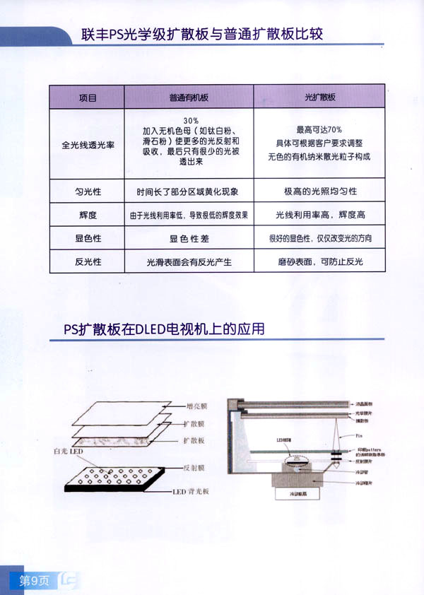 常州市聯(lián)豐(鏡面輥)集團(tuán)成立于2000年,是國(guó)內(nèi)從事板片材行業(yè)輥筒制造的專業(yè)企業(yè)。聯(lián)豐集團(tuán)全資子公司常州市聯(lián)豐光電科技有限公司成立于2013年6月。聯(lián)豐光電專業(yè)從事光學(xué)級(jí)擴(kuò)散板的研發(fā),生產(chǎn)和銷售。擁有各類高級(jí)技術(shù)研發(fā)人員10人,生產(chǎn)、管理及銷售人員60人。公司廠房占地面積2萬(wàn)平方米,工廠擁有十萬(wàn)級(jí)凈化車間,能有效滿足光學(xué)領(lǐng)域擴(kuò)散板生產(chǎn)的環(huán)境要求。公司已經(jīng)申報(bào)江蘇省高新技術(shù)企業(yè)。 公司現(xiàn)擁有全新進(jìn)口PS專用擴(kuò)散板材生產(chǎn)線兩條,月生產(chǎn)能力650噸PS擴(kuò)散板。日本進(jìn)口協(xié)榮裁切一體機(jī)兩臺(tái),月加工能力50萬(wàn)片(32寸擴(kuò)散板)。 聯(lián)豐生產(chǎn)的VFP系列PS擴(kuò)散板能廣泛應(yīng)用于直下式LED,CCFL液晶電視背光模組。產(chǎn)品在很多國(guó)內(nèi)一線TV的背光模組上使用。產(chǎn)品具有高輝度,高擴(kuò)散性,特別適用于超薄背光模組的擴(kuò)散部件,能有效降低成本,節(jié)約能源。 由于LED照明行業(yè)的興起,公司特別針對(duì)于LED面板燈和筒燈開發(fā)的LFP系列擴(kuò)散板,在滿足透光率條件下,能最大限度提高光通量,從而增加燈具的光效,受到廣大客戶的好評(píng)。