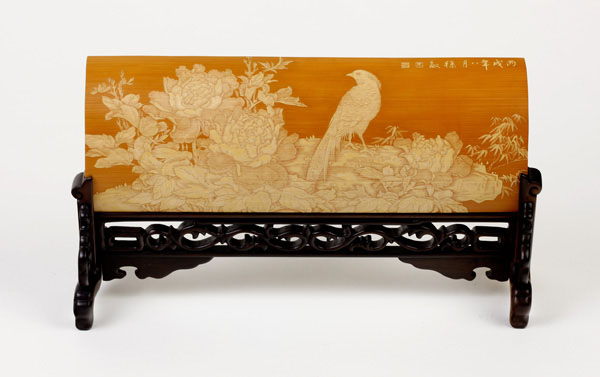 徐敏,一九七四年生于江蘇常州,擅長山水油畫。師從竹刻家范遙青研習(xí)竹刻至今有二十余載。其作品受到竹刻權(quán)威鑒賞家王世襄認(rèn)可,并親筆為她題字褒獎(jiǎng),F(xiàn)為常州市非物質(zhì)文化遺產(chǎn)傳承人。