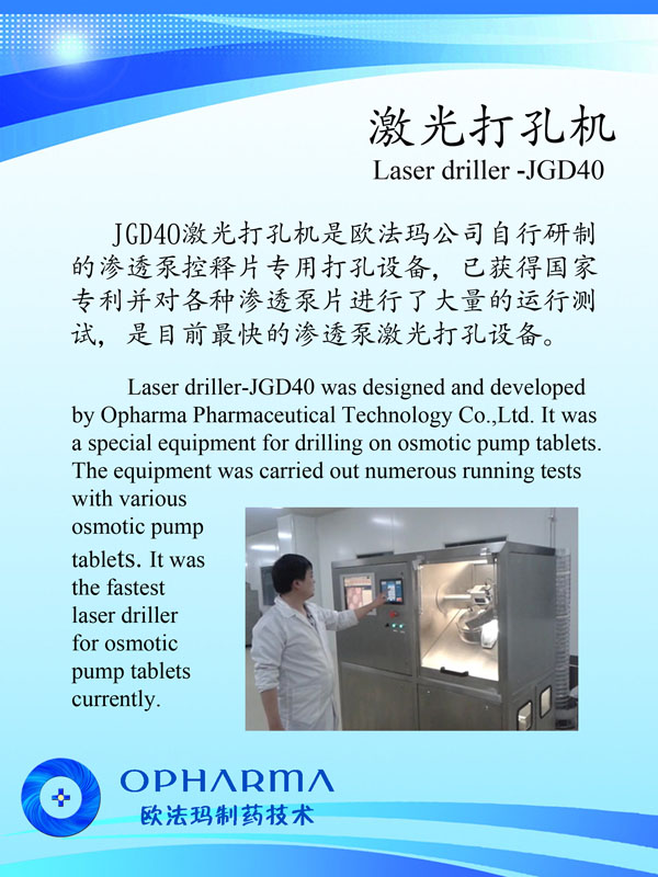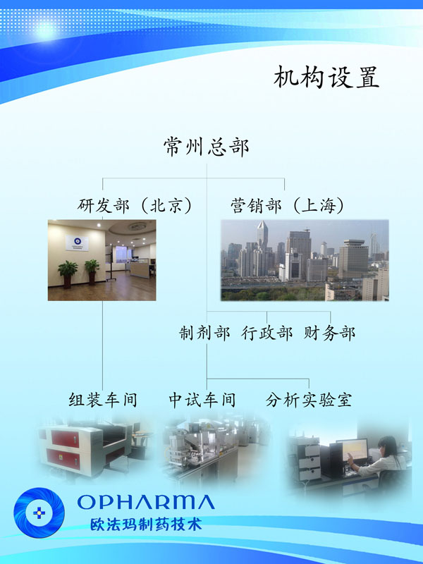 常州歐法瑪制藥技術有限公司位于長江三角洲黃金腹地——常州。地理位置優(yōu)越、交通便捷,由鐵路、公路、水路、民航形成了一張立體交叉的交通網絡。 公司創(chuàng)建于2013年,是一家集研發(fā)、生產和銷售為一體,專業(yè)從事高速激光打孔機、滲透泵制劑研發(fā)、生產和銷售。目前公司擁有員工20人,科技研發(fā)和技術人員占員工總數(shù)80%以上,其中本科以上學歷占80%以上。 公司始建以來,以前瞻的科學規(guī)劃,通過自主研發(fā),解決了高速激光打孔機諸多的世界難題,使之達到40片/秒以上且精確打孔的國際領先水平;同時開發(fā)廢片自動識別、剔除功能,以滿足客戶的實際所需。公司與瑞士等國家研究機構的科技合作,以高速激光打孔機為基礎,建設了滲透泵制劑研發(fā)和中試生產車間,開發(fā)了多種藥物的滲透泵制劑,形成了從關鍵設備研制,新制劑開發(fā)、工藝配套,到批量生產測試的滲透泵制劑開發(fā)全過程技術團隊和研究設施。公司瞄準現(xiàn)代新型釋藥系統(tǒng),吸收國內外高端人才,努力開拓控緩釋技術、靶向給藥技術及智能給藥技術。 2013年公司被評為黑馬大賽“創(chuàng)業(yè)組50強”、“領軍人才創(chuàng)業(yè)重點企業(yè)”;2014公司通過了IS09001-2008質量管理體系認證、CE認證、江蘇省質量信得過企業(yè)。