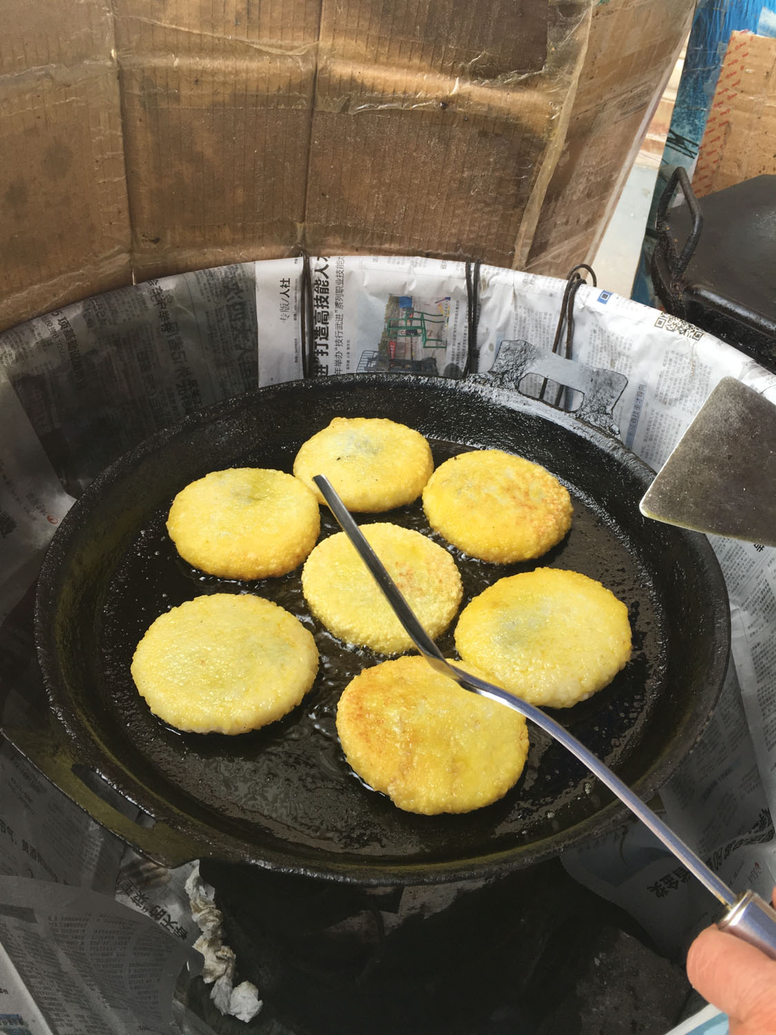 魁元面館,橫山橋江南路,沿街的店鋪。老板娘徐文霞,從公婆手里接過(guò)這個(gè)店面已有20多年。最具特色的菜品是肉圓跟大排。每天凌晨3點(diǎn)就要起來(lái)做準(zhǔn)備,菜都是現(xiàn)燒現(xiàn)賣。 特色小菜: 肉圓:有人特意遠(yuǎn)道而來(lái)打包走 大排面:每天能賣出100來(lái)塊大排 大腸 雞蛋:每天煎的雞蛋就差不多300來(lái)個(gè) 小餛飩、大餛飩 限時(shí)供應(yīng): 咸鴨蛋、肉粽、蛋黃粽:每天都要包,放爐子燒,在端午前后供應(yīng),很好吃。每天都有人打包幾個(gè)咸鴨蛋或者粽子拿回家,送人 油酥餅(圖3-4)、糍團(tuán)餅(圖5-6)、韭菜餅(圖7-8) 油酥餅每天晚上做,涼了更好吃,更酥更脆,里面都是很香的黑芝麻;糍團(tuán)餅,每天中午擺攤熱了煎鍋開始煎,糯米做成,用菜籽油煎至金黃,餡兒是黑芝麻瓜子仁;韭菜餅是最受歡迎的,每天都有好多人排隊(duì)來(lái)買。供應(yīng)時(shí)間:每年的4月份到11月份 下午1點(diǎn)到5點(diǎn)半。