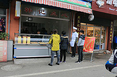 武進區(qū)前黃韓記點心坊從事各式點心制作已有兩代人,特色是雞蛋油條,特色大麻糕,小籠包及各種饅頭,大麻糕又酥又松。 天光大亮,前黃寨橋農(nóng)貿(mào)市場已是人來人往,熱鬧非凡。 靠近市場的一排店面房,聞著隱約飄出的芝麻香,記者找到了坐落其中的韓記點心坊。 油條在鍋內(nèi)滋滋翻滾、各種口味的麻糕在柜臺里依次擺開、包子隱藏在散著熱氣的蒸鍋內(nèi)……沉寂一個晚上的胃,頓時有些不安于寂寞。 韓記大油條: 飯店、麻辣燙店點名要它 60斤面粉,大約400根油條,這是韓記點心坊每天要賣掉的量。 將預(yù)先調(diào)制好的面團鋪開,切成均勻的長條,每兩條上下疊好,用小竹板中間一壓、拎起兩頭一拉,放進油鍋,滿鍋的油就開始沸騰起來。 老板韓效慶做起油條來一氣呵成,他的油條會用到低筋、中筋、高筋三種面粉,根據(jù)季節(jié)不同,配比也不同,再加雞蛋、泡打粉發(fā)面,炸好后吃起來特別香脆。 “附近市場飯店、麻辣燙店用的油條都是我這里的,有些食客點名要吃我們店里的油條!表n效慶自豪地介紹說,他做點心的手藝是從父親那里學(xué)來的。在父親手下學(xué)了7年后,他先后前往常州迎桂饅頭店、興隆園美食城、常州麻糕店等地打工,最終形成了自己的點心配方。 兩年前,韓效慶回到家鄉(xiāng),在農(nóng)貿(mào)市場租店面開了點心坊,這里也成了市場上最熱鬧的一家店鋪。 韓記大麻糕: 冷著吃也很酥脆 向外地人介紹常州地道美食,大麻糕是絕對繞不過的。一家好的麻糕店,一定要具備以下特點:清晨排長隊;麻糕被帶往外地甚至海外;死忠粉甚多。而這些特點,韓記大麻糕都具備。 要問韓記大麻糕與其他麻糕有什么不同,韓效慶還真說出了好幾個區(qū)別。例如,很多傳統(tǒng)麻糕使用烤桶,烤桶內(nèi)用的是煤,而韓記用的是大烤箱。再比如,一些外地朋友吃到的麻糕“干乎乎、木噱噱”,“這是因為他們買到的麻糕采取了普通的發(fā)面方式,再放進爐子或烤箱一烤,水分蒸發(fā)了,肯定硬!表n效慶經(jīng)過多次嘗試,用麥芽糖發(fā)面,麥芽糖具有保濕性,使水分不易蒸發(fā),對麻糕的保濕與品質(zhì)的維持有較好的效果,這樣做出來的麻糕即便冷了也依舊酥脆。甜味的韓記大麻糕也不使用白糖,而是采用果糖,麻糕冷后也不會結(jié)塊,保持了更好的口感。 在韓記,大麻糕做好后,表面的芝麻也不是撒上去的,而是印上去的。芝麻經(jīng)烘烤之后顆粒飽滿,呈象牙色,使大麻糕的香、脆得到充分體現(xiàn)。 韓記大肉包:糅合豆瓣醬的創(chuàng)新美味 下粉、摻水、攪拌、揉搓……棉絮狀的面粉像被施了魔法,不一會兒就變成了一個白凈光滑的面團。 韓效慶將面團放置在一旁,待它慢慢餳著,轉(zhuǎn)手拿出已經(jīng)拌好的餡料,“你能聞出什么味道嗎?”在確定記者猜不出后,他開始娓娓道來——豬肉都是后腿肉,餡料里不放鹽、味精,全靠豆瓣醬和糟方提味。 待面團和餡料都準(zhǔn)備就位,只見韓效慶一手拿著切好的面團,一手握著搟面棍,飛速地邊搟邊旋轉(zhuǎn),一張薄厚適中的面皮眨眼就制作完成了。他將搟好的面皮放于左手手心,舀起一勺肉餡置于面皮中央,熟練地將面皮捏出十多道褶皺,輕輕一扭,一個肉包躍然眼前。 待包子蒸好,食客們紛紛起身,等著帶走屬于自己的那一份美味。記者也忍不住拿起一個,咬上一口,咸鮮的美味、撲鼻的豆瓣香,那種特別的味道只有品嘗過的人才能體會。 食客點評:食客孫桂洪:我是寨橋人,住在湖塘好幾年了,可每隔一段時間,我就特別想那酥脆的油條和熱乎的肉包。驅(qū)車前往韓記點心坊,點上一碗豆腐湯,要兩樣點心,趁熱一股腦兒全都塞進胃里,每次吃完都特別滿足。
