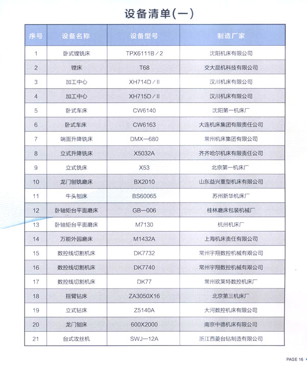 現(xiàn)公司擁有較強的機械加工能力,建立了一套完善的管理機構,技術力量雄厚,設備齊全。設備有:加工中心、鏜銑床、車床、銑床、龍門铇銑床、磨床、數(shù)控線切割機床等其它機械加工設備。