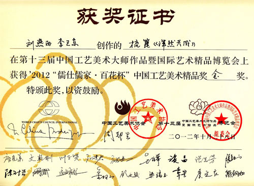 公司榮譽(yù)介紹: “2009年常州市旅游商品創(chuàng)新設(shè)計(jì)大賽”,“覽盡千荷”綠檀雕刻梳榮獲三等獎(jiǎng); “2011年常州市旅游商品創(chuàng)新設(shè)計(jì)大賽”,“彩印工藝梳-我們的年代(80)”榮獲二等獎(jiǎng)。 “2011年中國包裝創(chuàng)意設(shè)計(jì)大賽“,虞美人彩印梳篦系列包裝獲得一等獎(jiǎng); “2011年中國包裝創(chuàng)意設(shè)計(jì)大賽”,虞美人筷子系列包裝獲得三等獎(jiǎng); “2011創(chuàng)意中國.第五屆設(shè)計(jì)藝術(shù)大獎(jiǎng)賽”,虞美人系列包裝獲得三等獎(jiǎng); “2011首屆中國(無錫)國際文化藝術(shù)博覽會(huì)”,漆藝對(duì)梳《喜玫瑰》獲得“藝博杯“銅獎(jiǎng)。 “第十三屆中國工藝美術(shù)大師作品暨國際藝術(shù)精品博覽會(huì)”, 漆藝梳《報(bào)喜鳥》榮獲2012“儒士儒家•百花杯”中國工藝美術(shù)精品獎(jiǎng)優(yōu)秀獎(jiǎng) “第十三屆中國工藝美術(shù)大師作品暨國際藝術(shù)精品博覽會(huì)”, 虞美人《渾然天成》榮獲2012“儒士儒家•百花杯”中國工藝美術(shù)精品獎(jiǎng)金獎(jiǎng) “2012江蘇省工藝美術(shù)精品大獎(jiǎng)賽”,虞美人《S型梳》喜獲“藝博杯”銀獎(jiǎng) “第十四屆中國工藝美術(shù)大師作品暨國際藝術(shù)精品博覽會(huì)”, 虞美人工藝梳《新型十二星座梳》榮獲2013“國信•百花杯”中國工藝美術(shù)精品獎(jiǎng)優(yōu)秀獎(jiǎng) “2013【藝博杯】江蘇省工藝美術(shù)精品大獎(jiǎng)賽”,虞美人《萬事如意系列》喜獲“藝博杯”銀獎(jiǎng) “2013江蘇省工藝美術(shù)新人新作成果展作品大獎(jiǎng)賽”,虞美人《壺(福)的藝術(shù)》喜獲“藝博杯”入圍獎(jiǎng) 2013年度江蘇省“蘇商領(lǐng)袖峰會(huì)”,常州市卓尚飾品有限公司榮獲最具成長性企業(yè)獎(jiǎng) 常州市卓尚飾品(虞美人)有限公司總經(jīng)理李衛(wèi)東榮獲“常州創(chuàng)意產(chǎn)業(yè)協(xié)會(huì)2013年底慈善獎(jiǎng)榮譽(yù)” 常州市卓尚飾品有限公司榮獲薛家鎮(zhèn)人民政府2013年度“創(chuàng)新創(chuàng)優(yōu)”獎(jiǎng) 常州市卓尚飾品有限公司榮獲薛家鎮(zhèn)人民政府2013年度“銷售業(yè)績”獎(jiǎng) 2014中國(深圳)國際文化產(chǎn)業(yè)博覽交易會(huì),劉燕西、李衛(wèi)東、段筆耕<十二星座系列>獲得“中國工藝美術(shù)文化創(chuàng)意獎(jiǎng)”銀獎(jiǎng) 2014中國(深圳)國際文化產(chǎn)業(yè)博覽交易會(huì),徐德鴻、李衛(wèi)東、段筆耕《漆彩人生系列》獲得“中國工藝美術(shù)文化創(chuàng)意獎(jiǎng)”銅獎(jiǎng) 文化創(chuàng)意大獎(jiǎng)賽“紫金獎(jiǎng)” ,有余(魚)系列梳篦產(chǎn)品獲得了優(yōu)秀獎(jiǎng) 2014吟飛杯首屆常州文化創(chuàng)意和設(shè)計(jì)大賽,虞美人有余(魚)系列梳篦產(chǎn)品榮獲優(yōu)秀設(shè)計(jì)獎(jiǎng) 2014吟飛杯首屆常州文化創(chuàng)意和設(shè)計(jì)大賽,虞美人“云,月”系列梳篦產(chǎn)品榮獲優(yōu)秀設(shè)計(jì)獎(jiǎng) 2014藝博杯江蘇省工藝美術(shù)精品大獎(jiǎng)賽,虞美人《梳篦:酒醉的探戈》喜獲銀獎(jiǎng) 2014“中國原創(chuàng)•百花杯”中國工藝美術(shù)精品大獎(jiǎng)賽,虞美人《梳篦-江南風(fēng)韻系列》喜獲銀獎(jiǎng) 常州市卓尚飾品有限公司獲“2014年常州市電子商務(wù)協(xié)會(huì)2014年度優(yōu)秀會(huì)員單位” 2014“虞美人”成為常州市知名商標(biāo)。