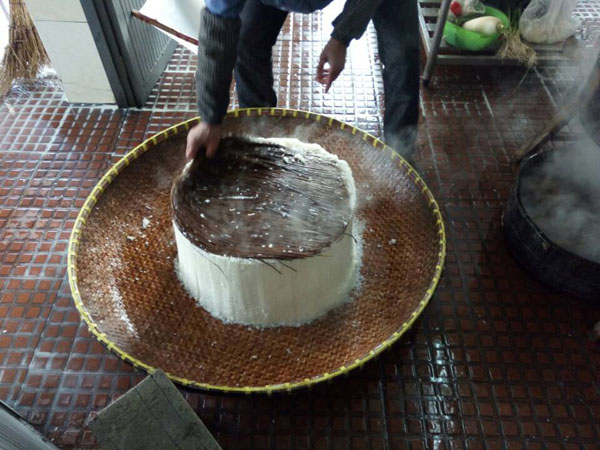 第一步:蒸糯米飯,老徐先用煤爐將水燒開,再將洗凈泡好的糯米放入一只大木桶中,放在爐子上蒸。除此以外,老徐還要不斷攪拌,保證糯米受熱均勻,直至散發(fā)出水蒸氣。為了保證米飯溫度,老徐特地用塑料薄膜將木桶封住,并用皮筋加固。蒸糯米飯,大約需要半個多小時。