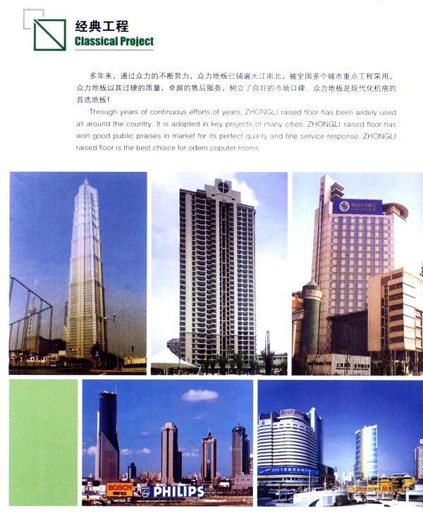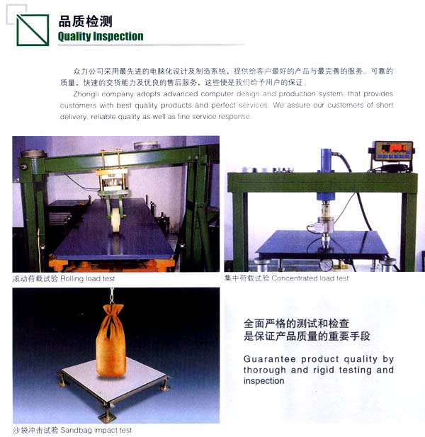 公司生產(chǎn)防靜電鋼質(zhì)、木質(zhì)機(jī)房地板和強(qiáng)化復(fù)合地板及各種電腦操作臺(tái)系列產(chǎn)品。該產(chǎn)品廣泛應(yīng)用于電子機(jī)房、通訊機(jī)房、各類實(shí)驗(yàn)室和管線鋪設(shè)集中的防靜電場(chǎng)所以及家庭、大型商場(chǎng)的裝飾。公司技術(shù)力量雄厚、管理科學(xué),已具有設(shè)計(jì)、開發(fā)、市場(chǎng)營(yíng)銷及售后服務(wù)的專業(yè)人才隊(duì)伍。