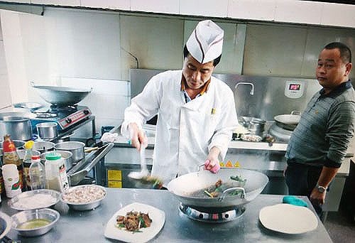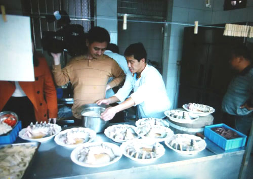 張萬成羊莊一家綜合性的公司,下設酒店,羊產(chǎn)品加工廠,屠宰廠,山羊養(yǎng)殖場。 酒店位于常州西夏墅浦河村,酒店羊宴規(guī)模占地30畝,酒店主要經(jīng)營特色全羊宴。 一個祖?zhèn)鞯臍⒀虼髴,傳到張萬成,已是第六代了。張家的羊肉,素來以肉質鮮美著稱,張萬成羊莊的主人張建龍是第六代傳人,張家的羊肉素來以肉質鮮美著稱,從常州新北區(qū)沿黃河西路往機場方向直行至羅溪右轉,穿過滬寧高速高架橋后不遠處左拐沿翠屏湖路直走便能看到張萬成羊莊,酒店上下共有三層,2000多平方米經(jīng)營面積,能同時接待近30桌客人的規(guī)模。有自己的羊圈和屠宰場,每天殺20多只,菜式近100道。光是原料,就從原來羊身上的幾個主要部位,增加到除了羊牙齒以外的一只整羊全部可以入菜。烹制方式,更是在本土單一的燒、炒、煮基礎上,借鑒了東北、廣東、四川等地的烹羊特色,增加了蒸、涮、烤、煎、炸等多種方式。 注重原汁原味的冷菜 白切羊肉:精選羊頸部的活肉精制而成,肥瘦適中,絲毫沒有一般羊肉的膻味,沾少許張萬成羊莊秘制的醬料,口感非常好。 美味羊舌:張家的羊舌感覺是用特殊的醬料腌制過的,咸中略有甜味,口感鮮嫩卻肥而不膩,味道很香。 除了白切羊肉和羊舌以外還有許多冷菜品種,如羊肚、羊心、羊耳朵等。。 火候控制精準的炒菜 炒羊肝:地道的農(nóng)家風味,與大蒜葉同炒,蒜香濃郁,羊肝鮮嫩,這羊肝可是火候菜,羊肝鮮嫩與否不但取決于廚師對火候的掌握,還在于上桌放置時間的長短,所以羊肝上桌后要盡快食用,看羊肝是否鮮嫩,只需用筷子挑起并輕輕抖動,有彈性者為佳。 美味羊寶:以韭黃、鮑味菇爆炒的羊寶,說是滋補壯陽的一道金貴菜,配料講究的燒菜系列 宮廷燴羊肚:較為金貴的菜品,配菜貴于主料,是以名貴的素鮑和新鮮的筍絲與羊肚同煮,口感濃郁,營養(yǎng)豐富。 海參白燒羊肉:將取自7個月大羔羊身上的帶皮腿肉與海參一同煨煮,菜肴美容滋補,兩種鮮味互相補益達到完美交融狀態(tài),口感甚佳。 魚羊鮮:新鮮的青魚配上羊肉,既有本地羊肉的肥嫩,又有魚肉的鮮香,鮮!鮮!古代人造字就是有道理!”店里可以根據(jù)客人的需要配以魚回魚、鯰魚、鱖魚等。 特色的羊宴點心 羊肉餛飩:羊莊老板自創(chuàng)的羊宴點心,看似普通的油燜跑蛋卻另有乾坤,將蛋掀開便能看見藏于其中的羊肉菜餡餛飩,菜和肉都是自家新鮮的原料,很好吃。 手工搟面:不知道是因為面是真正用手工搟制還是因為加入了鮮味十足的羊湯,總之味道非常好,面勁道,湯也鮮美! 張萬成羊莊的羊湯也是遠近聞名,因為是祖?zhèn)鞯氖炙嚕龀鰜淼难驕恍炔浑,香醇不膩,味道十分鮮美,加入粉絲或者面條更是難得的美味。