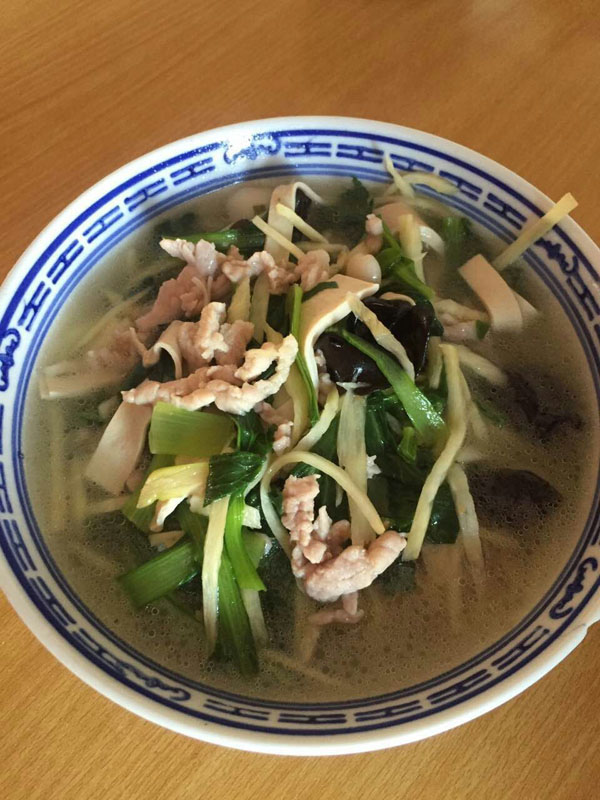 遙觀娟娟面館:青菜香菇雞蛋面 2016年歲末年初,武進區(qū)商務局、武進烹飪協(xié)會、《武進日報》等單位,在全區(qū)范圍內開展“武進招牌面”評選活動,最終,遙觀娟娟面館被評定為“武進招牌面”第一名。 2008年,馬玉娟所在的企業(yè)面臨倒閉,她開始謀求自己的創(chuàng)業(yè)之路。第一個想法就是開一家面館,因為妹妹馬小娟喜歡燒菜,親戚朋友吃了她燒的菜,無不嘖嘖稱贊。姐妹倆一合作,店名自然叫“娟娟面館”。 開面館,一面裝修,一面領“衛(wèi)生許可證”、“工商營業(yè)執(zhí)照”;再就是外出求藝學燒菜。姐妹倆兵分兩路:玉娟去學小炒,小娟去學大葷澆頭,不久便開張營業(yè)了。 行家吃面先品湯。娟娟面館的白湯是最樸實的燒法,它用大肉、排骨熬制4個小時,湯色清亮,香氣撲鼻。至于拌面湯,全部都是紅燒肉汁,加上香蔥、雞精等十多種調料,自然是色香味俱佳。 娟娟面館點單率最高的是青菜香菇雞蛋面,一菜一菇一蛋一湯,樸實無華,價廉物美,老少皆宜,久吃不厭,非常適宜我國人口的營養(yǎng)膳食結構。其中小青菜是當?shù)剞r(nóng)家的家常菜;雞蛋是當?shù)毓麍@散養(yǎng)的母雞所生,味道自然地道純正了。 娟娟面館自開張以來,幾乎天天顧客盈門,高峰時要在門外等候。如今姐姐的兒子和妹妹的女兒都已上陣傳承,并在湖塘鎮(zhèn)馬杭紡織城附近新開了一家連鎖面館,每天要賣出300-500碗各式面點。