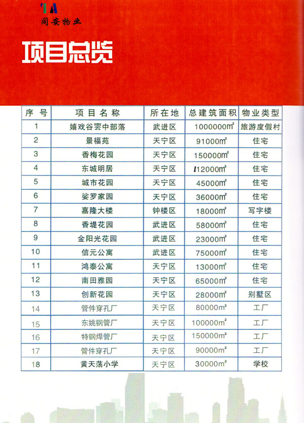 常州市同安物業(yè)管理有限公司注冊1999年,發(fā)展至今已有多年歷史,本公司坐落于美麗的龍城常州,秉承“融聚無限未來”的核心理念,融專業(yè)認(rèn)才,匯優(yōu)質(zhì)資源以”專心,細(xì)心,耐心”的服務(wù)態(tài)度,為客戶打造“安心,順心,稱心”的服務(wù)感受。