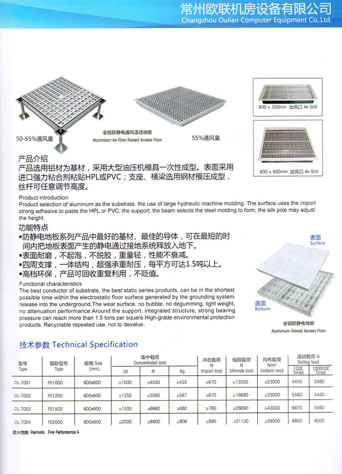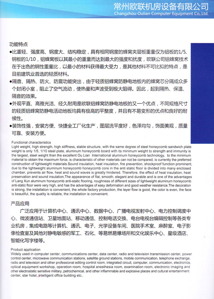 “歐聯(lián)”系列全鋼地板,符合國(guó)家安全要求,種類完備多樣,其中防靜電陶瓷地板、硫酸鈣地板等除具有普通瓷質(zhì)的裝飾和實(shí)用性外,其耐磨、防水、防火功能優(yōu)于其它同類產(chǎn)品,防靜電系列地板,能切合不同客戶的要求,其靈活的配置,深受客戶歡迎,不同材質(zhì)的地板結(jié)構(gòu)使設(shè)計(jì)師的設(shè)計(jì)空間比傳統(tǒng)的更加廣闊自由和善變。